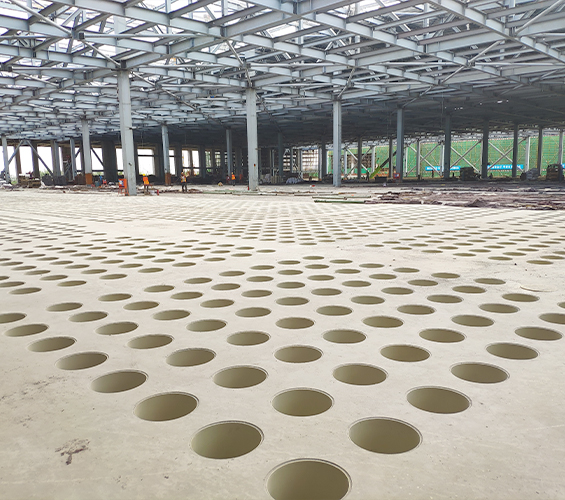結(jié)構(gòu)留孔:作為模板,澆筑混凝土后形成均勻圓形孔洞,構(gòu)成奇氏板(華夫板) 結(jié)構(gòu)。
